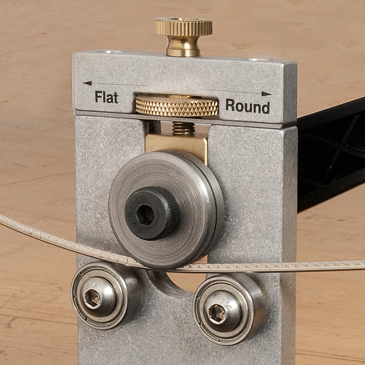 The FretBender uses precision ball-bearing rollers. The heavy-duty aluminum column can be clamped in a vise, or use the pre-drilled bolt holes to mount it to your workbench.