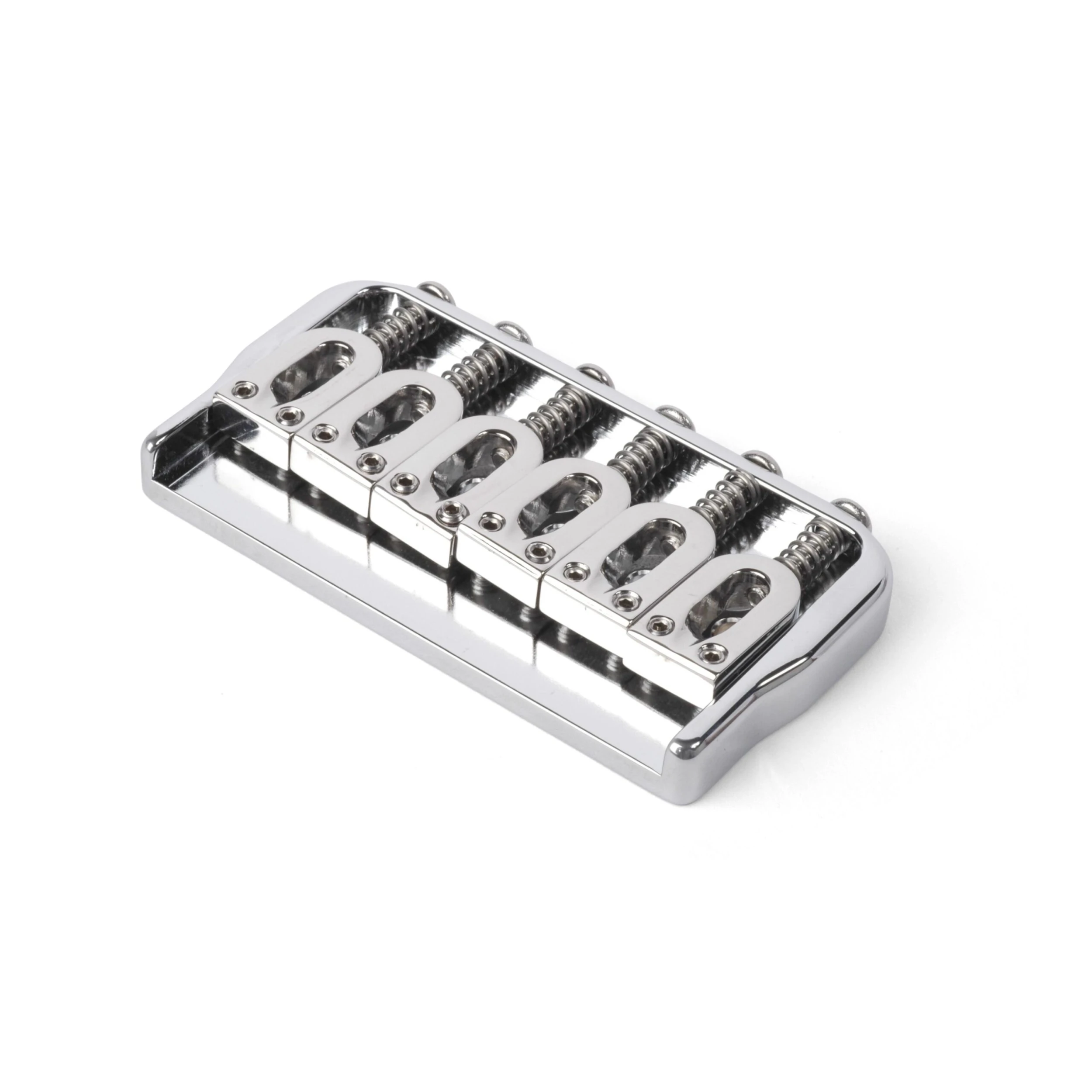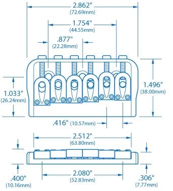 Machined from solid brass, polished and plated, this is among the most finely crafted bridges available for non-tremolo solidbody guitars with through-body string mounting. The forged steel adjustable saddles have 2-1/16″ string spread. Screws and allen adjustment wrench are included.